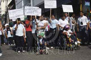 CHILPANCINGO, GUERRERO, 06DICIMBRE2013.- Estudiantes, maestros y alumnos del Instituto de Educación Especial CAM 01, marcharon de la alameda Granados Maldonado a la Residencia oficial del Gobierno del Estado, para exigir la rehabilitación de su edificio y que las materias de educación física, arte y matemáticas, no sean eliminadas. FOTO: JOSÉ I. HERNÉNDEZ /CUARTOSCURO.COM