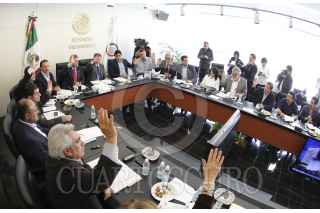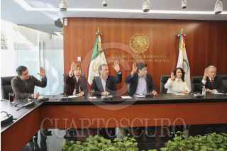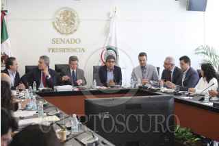 MÉXICO, D.F., 07DICIEMBRE2013.- Emilio Gamboa Patrón, coordinador del PRI en el senado; David Penchyna y Jorge Luis Preciado, líder de la bancada del PAN; asistieron a la reunión de la Comisión de Energía y Puntos Constitucionales. FOTO: SENADO /CUARTOSCURO.COM