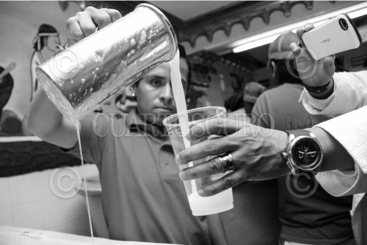 MÉXICO, D.F.,M 08DICIEMBRE2013.- El viernes por la tarde en la pulquería Las Licuadoras, ubicada en la colonia Doctores, se llevo a cabo el primer Tinacal de la Ciudad de México. Las distribuidoras de pulque: La Risa, Las Licuadoras y el Salón Casino, regalaron tinacos de esa bebida para difundir la tradición de su consumo. Cientos de personas de distintas partes de la ciudad, en su mayoria jóvenes, disfrutaron de una de las bebidas más importantes de México. El pulque es una bebida alcohólica que se fabrica a partir de la fermentación del jugo o aguamiel del agave o maguey (Agave salmiana). Actualmente su producción se realiza principalmente en el estado de Hidalgo, y casi todas las pulquerias de la ciudad traen la bebida de ese estado. FOTO: ADOLFO VLADIMIR /CUARTOSCURO.COM