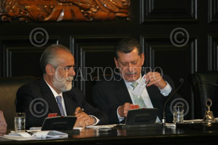 MEXICO, DF 08NOVIEMBRE2005º- El Senador Manuel Barttlet discutiendo sobre el nuevo régimen fiscal de Pemex que le otorga 23 mil millones de pesos adicionales de su presupuesto. FOTO: Leonardo Casas/CUARTOSCURO.COM