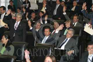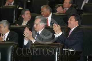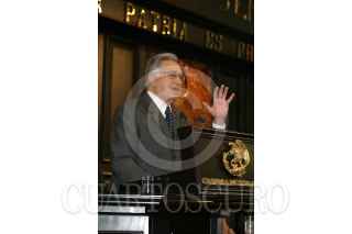 MEXICO, DF 08NOVIEMBRE2005º- El Senador Manuel Barttlet discutiendo sobre el nuevo régimen fiscal de Pemex que le otorga 23 mil millones de pesos adicionales de su presupuesto. FOTO: Leonardo Casas/CUARTOSCURO.COM