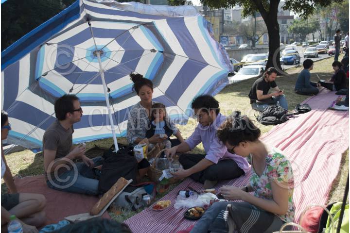 MÉXICO, D.F., 24NOVIEMBRE2013.- Un grupo de ambientalistas realizaron un picnic sobre el Viaducto Miguel Alemán, a la altura de Insurgentes, para manifestar su deseo de que el Río Piedad, que pasa debajo de esa vialidad, sea regenerado. FOTO: MITZI BLANQUET /CUARTOSCURO.COM