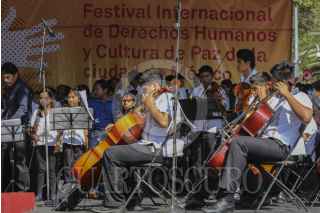MEXICO, D.F.,08DICIEMBRE2013- La Orquesta Renacimiento, proveniente del estado de Guerro e integrada por niños, se presenta como parte del programa en el Festival Internacional de Derechos Humanos, el cual fue inaugurado el día de hoy por la Ombudsman de la CNDH en el D.F., en compañía de la embajadora de España en México, pues este país fungió como invitado especial. FOTO: DAVID POLO /CUARTOSCURO.COM