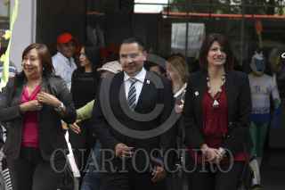 MÉXICO, D.F., 09DICIEMBRE2013.- Eduardo Venadero, director del Servicio de Transportes Eléctricos del Distrito Federal, Jacqueline L´Hoist Tapia, presidenta del consejo para prevenir y eliminar la discriminación y Beatriz Santamaría Monjaraz, titular de Inmujeres, inauguraron la feria de los derechos humanos en la movilidad en los talleres del sistema de transportes eléctricos.. FOTO: SAÚL LÓPEZ /CUARTOSCURO.COM