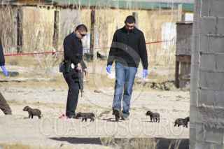 CIUDAD JUÁREZ, CHIHUAHUA, 10DICIEMBRE2013.- Personas que viven a la altura del kilómetro 13 de la carretera Casas Grandes localizaron esta mañana una cabeza humana en el patio de domicilio y al otro lado del terreno el cuerpo. Los residentes del domicilio indicaron que al hacer algunas cosas en el terreno de atrás encontraron la cabeza que pertenece a hombre y al recorrer el otro lado de la carretera encontraron el cuerpo. Policías municipales fueron los primeros en llegar a la escena donde se realizó el hallazgo y levantaron el reporte para posteriormente dar aviso a la Fiscalía Zona Norte. FOTO: NACHO RUIZ /CUARTOSCURO.COM