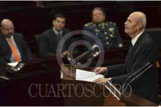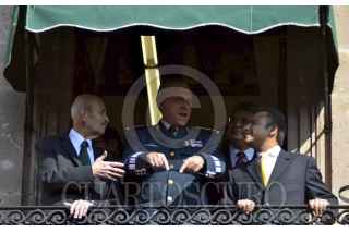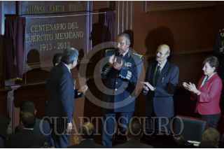 MORELIA, MICHOACÁN, 11DICIEMBRE2013.- La 72 legislatura del Congreso del Estado de Michoacán develó el nombre de “Centenario del Ejército Mexicano 1913-2013”, el cual a partir de este día se encuentra inscrito con Letras Doradas en el Frontispicio de Honor del Recinto del Poder Legislativo, con letras iguales a los próceres por sus acciones en favor al pueblo mexicano. Asistió Salvador Cienfuegos Zepeda, secretario de Defensa Nacional, acompañado por Fausto Vallejo Figueroa, gobernador del estado. FOTO: ALAN ORTEGA /CUARTOSCURO.COM