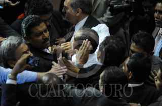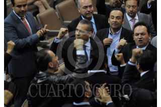 MEXICO, D.F., 11DICIEMBRE2013.- Arturo Escobar, diputado del PVEM, celebra el resultado de la votación en lo general de la reforma energética. FOTO: IVAN STEPHENS /CUARTOSCURO.COM