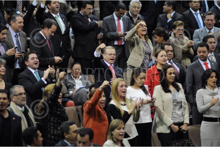MEXICO, D.F., 11DICIEMBRE2013.- Arturo Escobar, diputado del PVEM, celebra el resultado de la votación en lo general de la reforma energética. FOTO: IVAN STEPHENS /CUARTOSCURO.COM
