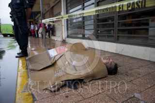 VILLAHERMOSA, TABASCO, 12DICIEMBRE2013.- Un hombre de aproximadamente 50 años de edad perdió la vida al resbalarse después de ir caminando en estado de ebriedad cuando iba pasando afuera de la mueblería El Faro que se ubica en la avenida Francisco I. Madero de la colonia Centro. Las autoridades policíacas informaron que los hechos acontecieron cuando el hoy occiso iba en compañía de otros dos compañeros de parranda, y que uno de ellos perdió el equilibrio lo que hace suponer el motivo del hecho, por lo que resguardaron el área para posteriormente los elementos forense de la PGJ dar fe de los hechos y levantamiento del cuerpo. FOTO: MARCO POLO GUZMÁN HERNÁNDEZ /CUARTOSCURO.COM