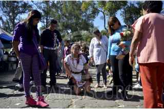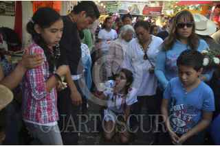 MORELIA, MICHOACÁN, 12DICIEMBRE2013.- Viviana Guadalupe de 16 años le pago el favor a la Virgen de Guadalupe, la que según ella le cumplió al ayudarle a su tío a salir de la cárcel y hacer que se portara bien al salir de ésta, recorrió de rodillas la Calzada Fray Antonio de San Miguel sin protección alguna hasta llegar al templo de San Diego, hecho que le causó heridas y mucho dolor durante el recorrido, la menor de edad fue apoyada en todo momento por su madre, el tío y otros familiares. FOTO: ALAN ORTEGA /CUARTOSCURO.COM