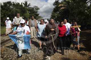 AMATLÁN DE LOS REYES, VERACRUZ, 13DICIEMBRE2013.- La caravana de madres centroamericanas en la búsqueda de hijos y familiares migrantes desaparecidos, arribó al albergue "Esperanza Migrante", atendido por el grupo de mujeres denominado Las Patronas. Dentro de las actividades se realizó una oración a cargo de Fray Tomas González y una caminata por las vías en donde exigieron a las autoridades la aparición con vida de sus consanguíneos. FOTO: FÉLIX MÁRQUEZ / CUARTOSCURO.COM