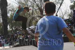 MEXICO, D.F., 14DICIEMBRE2013.- Al mediodìa se celebró en el parque del velódromo olìmpico la competencia de skateboarding AMPA AM 2013, donde cada año se reunen skaters de varias partes del país para concursar. En este evento los concursantes lucen sus mejores trucos y tecnicas en este deporte. FOTO: DAVID POLO /CUARTOSCURO.COM