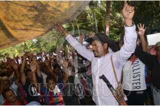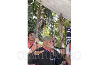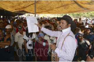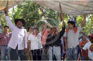 ACAPULCO, GUERRERO, 14DICIEMBRE2013.- Integrantes del Consejo de Ejidos y Comunidades Opositoras a la presa La Parota (Cecop), acompañados de diferentes organizaciones nacionales como Atenco, e internacionales; anunciaron que iniciarán los trabajos administrativos para independizarse de Acapulco y convertir a los Bienes Comunales de Cacahuatepec en un municipio libre y soberano. FOTO: BERNANDINO HERNÁNDEZ/ CUARTOSCURO.COM