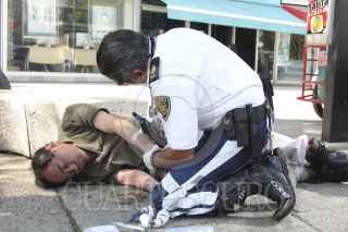 MÉXICO, DF., 16DICIEMBRE2013.- El consumo de bebidas embriagantes en la temporada navideña incrementa en la población ante el llamado maratón Guadalupe-Reyes. En la imagen un paramedico atiende a una persona que sufrió una congestión alcohólica en la glorieta de Colón en la colonia Tabacalera. FOTO: SAÚL LÓPEZ /CUARTOSCURO.COM