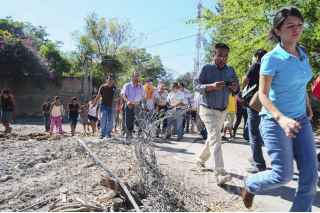 CHILPANCINGO, GUERRERO, 16DICIEMBRE2013.- Los senadores perredistas Armando Ríos Piter, conocido como “El Jaguar, y Alejandro Encinas, realizaron un recorrido por la zona de viviendas afectadas en la zona de Petaquillas y el acotamiento del Río Huacapa. Un estimado de 60 personas los esperaban, posteriormente se sumaron otras 150, ante los cuales los senadores se comprometieron a contribuir con ayuda para los damnificados. FOTO: JOSÉ I. HERNÁNDEZ /CUARTOSCURO.COM