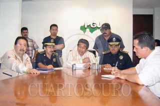 VILLAHERMOSA, TABASCO, 14NOVIEMBRE2005.- El procurador General de Justicia; Angel Mario Balcazar Martìnez (C) en rueda de prensa hablo sobre el modus operantis de la banda de secuestradores "Los Cañales", quienes operaban en la regiòn de la Chontalpa, donde tambien asaltaban en comercio, casa habitaciòn y robo de autos. FOTO: Marco Polo Guzmán/CUARTOSCURO.COM