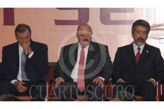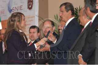 MÈXICO, D.F. 14NOVIEMBRE2005.- El presidente, Vicente Fox; el secretario de Educación, Reyes Tamez Guerra y el director del Instituto Politécnico Nacional, Jose Enrique Villa Rivera durante la Entrega de Capital Semilla a Emprendedores en la Unidad Politécnica para la competitividad y el desarrollo empresarial. FOTO: Miriam Sánchez/CUARTOSCURO.COM