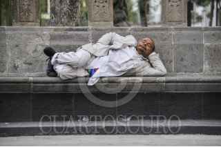 MÉXICO, D.F., 19DICIEMBRE2013.- Entre las actividades constantes que se realizan en la ciudad, un hombre descansa plácidamente sobre una de las bancas de la Alameda Central. FOTO: DIEGO SIMÓN SÁNCHEZ /CUARTOSCURO.COM