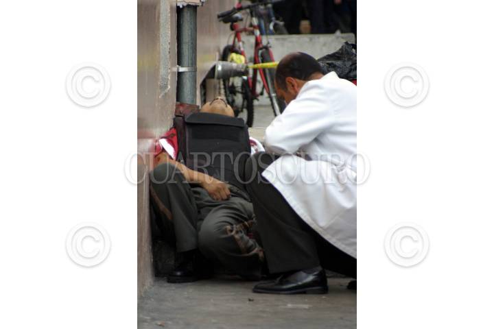 MEXICO, D,F, 14 NOVIEMBRE2005.- Un custodios de la camioneta de valores Ibissa murio y dos resultaron lesionados en un enfrentamiento a balazos en el centro comercial Lindavista. FOTO Pedro Marrufo/CUARTOSCURO.COM