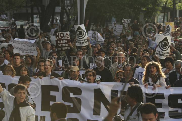 MÉXICO, D.F., 20DICIEMBRE2013.- .- Miles de jóvenes, en su mayoría estudiantes, marcharon del al Ángel de la Independencia con dirección al Zócalo, pero un grupo de granaderos impidió su paso en avenida Francisco I. Madero. La protesta se realizó para manifestar su inconformidad contra la Reforma Energética, la cual fue promulgara el día de hoy por el presidente Enrique Peña Nieto. FOTO: ADOLFO VLADIMIR /CUARTOSCURO.COM