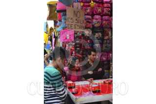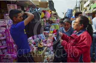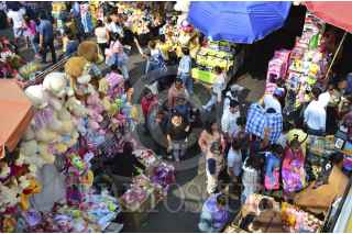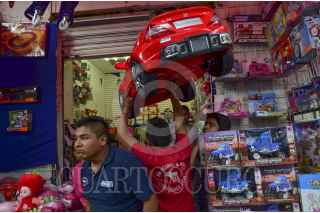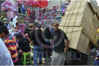 MÉXICO, DF., 23DICIEMBRE2013.- Las calles de Moneda, Carmen y República de Colombia permanecen abarrotadas por cientos de personas que acuden a la compra de productos navideños. Según Miguel Ángel Martín, presidente de la Asociación Mexicana de la Industria del Juguete, “la venta de juguetes más importante en el año se da entre el 10 de noviembre y hasta el 06 de enero”. FOTO: MARÍA JOSÉ MARTÍNEZ /CUARTOSCURO.COM