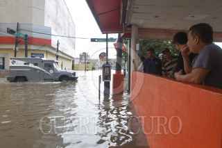 VILLAHERMOSA, TABASCO, 24DICIEMBRE2013.- Torrenciales lluvias son provocadas por el frente frío número veinte. Las calles de la zona céntrica de la capital registraron inundaciones que afectaron comercios y pérdidas incalculables. la tormenta ha afectado desde ayer a partir de las 5 de la tarde; hasta el momento no han cesado las intensas lluvias. La masa de aire polar mantendrá el ambiente muy frío en los estados del norte y tormentas intensas en el sur. FOTO: MARCO POLO GUZMÁN HERNÁNDEZ /CUARTOSCURO.COM