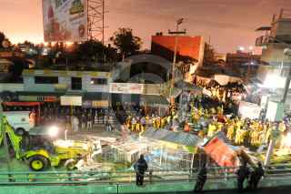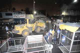 MÉXICO D.F; 26DICIEMBRE2013.- Mediante fuerte operativo armado con 2100 elementos aproximadamente entre Policías y personal de GDF, fue desmantelado el Mercado conocido como “El nuevo Tepito”, ubicado en calles del Pueblo de Santa Martha Acatitla en Iztapalapa. Apoyados con varios camiones y trascabos que transportaron el material con que estaba hecho este mercado semifijo. FOTO: LUIS CARBAYO /CUARTOSCURO.COM
