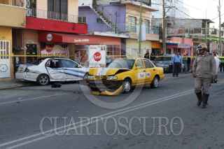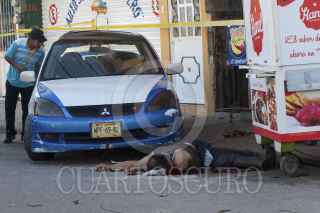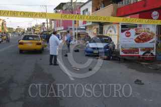 VILLAHERMOSA, TABASCO, 27DICIEMBRE2013.- Un hombre de aproximadamente 35 años quien viajaba en una motoneta perdió la vida al ser arrollado por un vehículo marca Mitsubishi. Después del impacto chocó contra un taxi en las inmediaciones de la colonia Primero de Mayo. Autoridades de la Policía Estatal, Policía Estatal de Caminos y de la Procuraduría General de Justicia resguardan el área acordonada en el cruce de las calles Paseo de la Sierra con Moisés Sosa. El cuerpo fue levantado sin vida para trasladarlo al anfiteatro del Servicio Médico Forense. FOTO: MARCO POLO GUZMÁN HERNÁNDEZ /CUARTOSCURO.COM