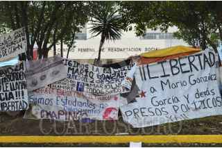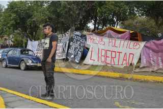 MÉXICO, DF., 27DICIEMBRE2013.- Amigos de Mario González, quien mantuvo una huelga de hambre desde el 08 de octubre hasta el 03 de diciembre por haber sido detenido el pasado 02 de octubre durante las protestas por el aniversario de la matanza de Tlatelolco, permanecen en plantón frente al Centro Femenil de Readaptación Social en Tepepan y exigen la liberación de su compañero. FOTO: MARÍA JOSÉ MARTÍNEZ /CUARTOSCURO.COM