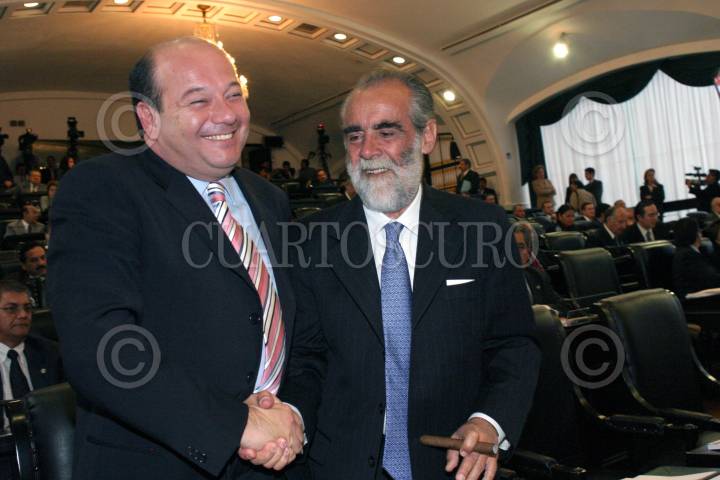 MEXICO, D.F., 15NOVIEMBRE2005.- Jorge Emilio González, senador del PVEM y Emilio Gamboa, senador del PRI, durante la sesión ordinaria en el Senado de la República. FOTO: Moisés Pablo/CUARTOSCURO.COM