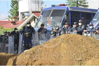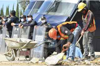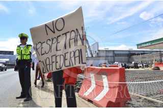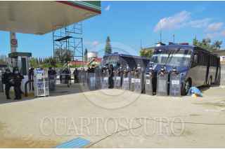 MÉXICO, DF., 28DICIEMBRE2013.- Vecinos de la colonia San Pedro Mártir continúan manifestándose sobre la carretera México-Cuernavaca a la altura del kilómetro 19. Mencionaron que no se moverán hasta que la gasolinera, abierta desde el pasado 24 de diciembre después de un operativo con granaderos, sea clausurada. El campamento que mantenían ocupado los vecinos desde hace 2 años fue removido por el cuerpo policiaco de la Secretaría de Seguridad Pública del DF. Vecinos mencionaron que la construcción de la gasolinera dañó la tubería que corre sobre la carretera, lo que ha causado problemas de agua en la zona, además indicaron que el establecimiento fue construido sin permiso de uso de suelo. La gasolinera se encuentra todavía asegurada por granaderos para evitar la concentración de manifestantes. FOTO: MARÍA JOSÉ MARTÍNEZ /CUARTOSCURO.COM