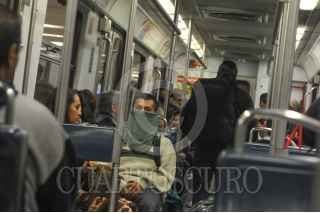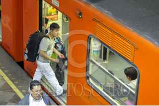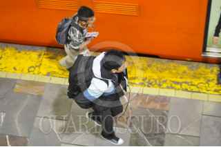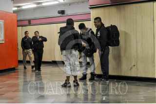 MÉXICO, D.F., 29DICIEMBRE2013.- Vendedores ambulantes continúan trabajando en los convoyes dentro de las instalaciones de la Línea 1 del metro. Los comerciantes trabajan de forma más discreta, no le suben tanto el volumen a sus bocinas, esconden sus productos en bolsas negras y a veces se suben en parejas al convoy. FOTO: DIEGO SIMÓN SÁNCHEZ /CUARTOSCURO.COM