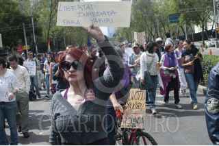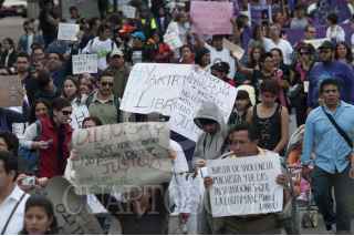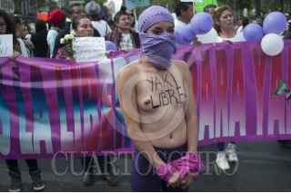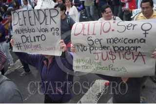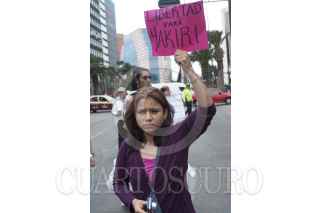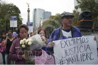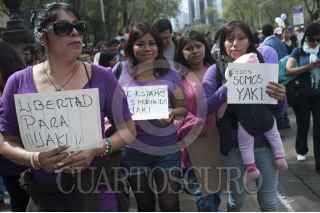 MÉXICO, D.F., 29DICIEMBRE2013.- Activistas, feministas y familiares de Yakiri Rubí Rubio Aupart, la joven acusada de matar a su agresor, marcharon del Ángel de la Independencia al Hemiciclo a Juárez para exigir a las autoridades su inmediata liberación. Yakiri se encuentra presa acusada de asesinar a Miguel Ángel Ramírez Anaya, de 37 años, a quien la joven de 20 señaló como el sujeto que la secuestro y llevó a un hotel para abusar de ella. La Procuraduría General de Justicia capitalina ha señalado que no está comprobado que la joven fue víctima de violación y que testigos afirman que entró por su voluntad al hotel donde entró con Ramírez Anaya. FOTO: IVÁN STEPHENS /CUARTOSCURO.COM