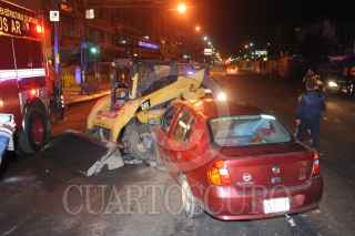MÉXICO D.F; 30DICIEMBRE2013.- Un hombre de aproximadamente 30 años, pierde la vida al impactar el auto Platina en que viajaba como pasajero contra un trascabo que realizaba maniobras de repavimentación en Av. Circunvalación a la altura de la calle Penitenciaria de la colonia Merced. FOTO: LUIS CARBAYO /CUARTOSCURO.COM