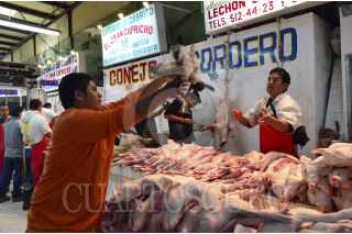 MÉXICO, DF., 30DICIEMBRE2013.- La oferta de carnes exóticas en el Mercado de San Juan, ubicado en la calle de Ernesto Pugibet en la colonia Centro, es amplia en esta temporada decembrina. Carne de venado, conejo, cerdo, avestruz, pato, león y cabrito son algunas de las opciones que los comerciantes ponen a la disposición de los clientes. El precio aproximado de un pavo es de 80 pesos el kilo; el de venado, 750 pesos. Además se pueden encontrar cerdos, lechones y mariscos. FOTO: MARÍA JOSÉ MARTÍNEZ /CUARTOSCURO.COM
