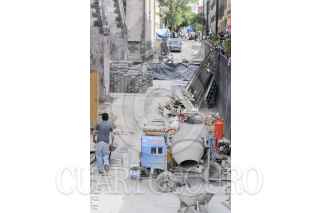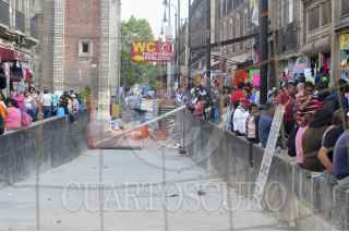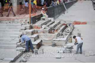 MÉXICO, D.F., 30DICIEMBRE2013.- Trabajadores remodelan el cruce de las calles a desnivel Emiliano Zapata y Santísima en el Centro Histórico para convertirlas en peatonales. El proyecto incluye escalonamiento y un sistema ligero de puentes y pavimentación en un tramo de 800 metros. FOTO: DIEGO SIMÓN SÁNCHEZ /CUARTOSCURO.COM
