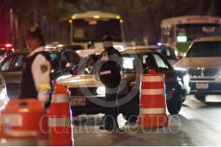 MÉXICO, D.F., 30DICIEMBRE2013.- La Secretaría de Seguridad Pública implementó el programa "Conduce sin Alcohol" en la Avenida Reforma a su cruce con Campos Elíseos de la Colonia Polanco, Delegación Miguel Hidalgo, para evitar accidentes viales cometidos por personas que conducen en estado de ebriedad. En el operativo algunos conductores fueron sometidos, de manera aleatoria, a la prueba del alcoholímetro. FOTO: IVÁN STEPHENS /CUARTOSCURO.COM