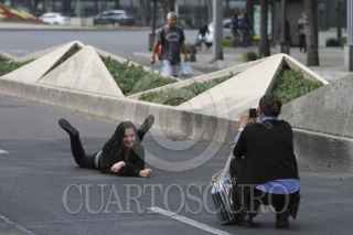 MÉXICO, D.F., 31DICIEMBRE2013.- Una joven se toma una foto en Paseo de la Reforma, que se encuentra bloqueado para uso vehicular, ya que se realizará el concierto de fin de año organizado por el GDF. FOTO: ADOLFO VLADIMIR /CUARTOSCURO.COM