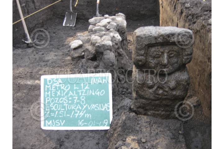 MÉXICO, D.F., 31DICIEMBRE2013.- En el tramo de las estaciones Alcancía y Sur de la línea 12 del metro fueron encontrados restos arqueológicos prehispánicos. FOTO: INAH /CUARTOSCURO.COM