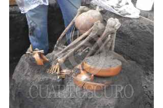 MÉXICO, D.F., 31DICIEMBRE2013.- En el tramo de las estaciones Alcancía y Sur de la línea 12 del metro fueron encontrados restos arqueológicos prehispánicos. FOTO: INAH /CUARTOSCURO.COM