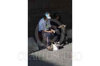 MÉXICO, D.F., 31DICIEMBRE2013.- Un bolero lee la biblia con un pastor de una iglesia cristiana en las inmediaciones del Antiguo Palacio del Ayuntamiento en el Centro Histórico. FOTO: MOISÉS PABLO /CUARTOSCURO.COM