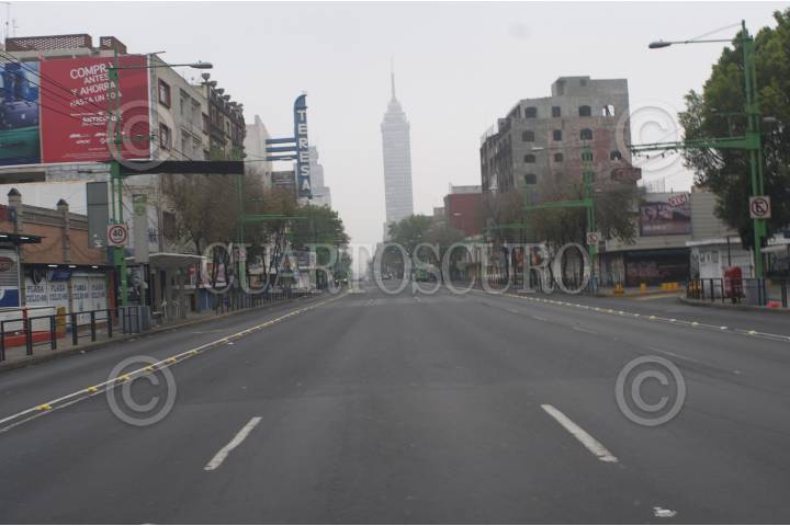 MÉXICO, D.F., 01ENERO2014.- Las calles de la ciudad se encuentran vacías en las primeras horas del inicio de año. El primer cuadro amaneció con brumo en el aire. Aquí avenida Juárez. FOTO: IVÁN STEPHENS /CUARTOSCURO.COM