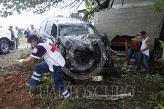 VILLAHERMOSA, TABASCO, 01ENERO2014.- Debido al exceso de velocidad y conducir en piso mojado, y presuntamente en estado de ebriedad, un conductor en lujosa camioneta que se identificó como Roberto Carlos Cisneros de 38 años de edad colisiono contra una propiedad en la cual provoco el rompimiento de la barda de la recamara al salirse de la cinta asfáltica. Los hechos se registraron sobre la carretera interestatal en la ranchería Curahueso con dirección a Ixtacomitan tercera sección, donde el hombre se negó a recibir atención de socorristas de la benemérita Cruz Roja y posteriormente fue ayudado por lugareños a salir del vehículo siniestrado. FOTO: MARCO POLO GUZMÁN HERNÁNDEZ /CUARTOSCURO.COM
