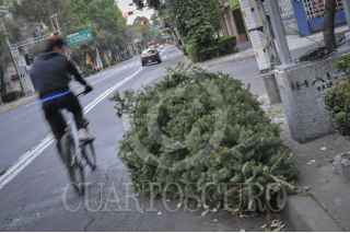 MÉXICO, D.F., 01ENERO2014.- Un árbol de navidad se convirtió en desecho al ser tirado sobre la calle Juan Escutia de la colonia Condesa. Es común que la gente tire sus árboles de navidad por las calles después de las fiestas decembrinas para que la gente encargada de recoger basura se los lleve. FOTO: DIEGO SIMÓN SÁNCHEZ /CUARTOSCURO.COM