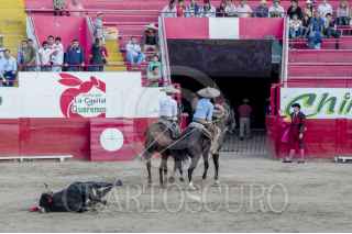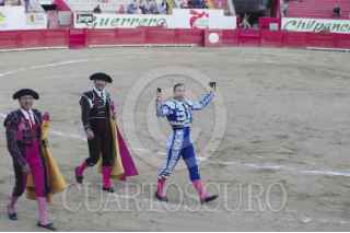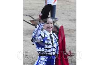 CHILPANCINGO, GUERRERO, 01ENERO2014.-La matadora Mary Paz Vega salió triunfante al matar al segundo toro de la tarde y le fueron entregadas las dos orejas. El público la felicito con aplausos en la plaza Belisario Arteaga. FOTO: JOSÉ I. HERNÁNDEZ /CUARTOSCURO.COM