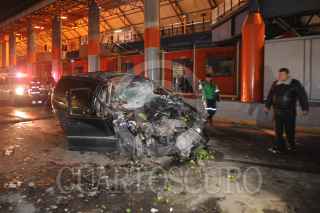 ECATEPEC, ESTADO DE MÉXICO; 04ENERO2014.- Un hombre de aproximadamente 25 años, pierde la vida al impactar con la camioneta Windstar que conducía, contra una camioneta de 31/2 Tns. que transportaba limón y se encontraba estacionada en carriles centrales de Av. Central, junto a la estación del metro Ciudad Azteca en Ecatepec. FOTO: LUIS CARBAYO /CUARTOSCURO.COM