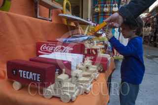 MÉXICO, D.F., 04ENERO2014.- Diversos juguetes típicos mexicanos tales como, trompos, baleros, camiones y aviones de madera, marionetas, casitas de muñeca, entre muchos otros, son vendidos en algunos mercados de la ciudad como en el mercado de artesanías de La Ciudadela, que se encuentra ubicado cerca del metro Balderas, en el centro de la ciudad. En años recientes los niños mexicanos ya no piden estos juguetes como regalo de Reyes Magos, ahora prefieren diversos productos electrónicos e incluso se ha disparado la venta de productos chinos que son juguetes de bajo precio pero de muy mala calidad. FOTO: RODOLFO ANGULO /CUARTOSCURO.COM