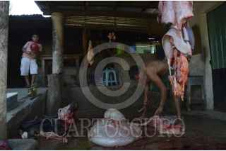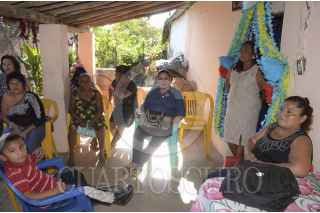 ACAPULCO, GUERRERO, 04ENERO2013.- Decenas de paisanos que regresaron de los Estados Unidos llegaron mero a la celebración de que desde hace un siglo a principios de año, el poblado Los Huajes, municipio de Acapulco, y dos Arroyos celebran a la virgen de Genoveva con música de viento, bailables populares, tamales, quema del torito y castillo. En su honor de los que llegaron mataron una res para el festejo. En Los Huajes las familias preparan a los jóvenes desde pequeños para vivir como migrantes en los Estados Unidos. A 90 kilómetros del puerto, las viviendas en muchos casos aún son de adobe, madera y teja, sin agua y sin drenaje. Las remesas son el pilar de la economía. El presidente del club de migrantes de Dos Arroyos, Edilberto Ceballos Carbajal, estimó que actualmente hay unos 5 mil personas de pueblos de la denominada ruta del sol de la zona rural de Acapulco, diseminados en Estados Unidos, principalmente California, Phoenix, Nevada y Nueva York, quienes se desempeñan en puestos de mano de obra, pega de azulejos y ensamblados. Ceballos Carbajal confesó que "uno allá tiene que llorar y aguantarse, sus lagrimas y en el camino del paso para cruzar para el otro lado tienen que comerse el excremento de las vacas" que encuentran a su paso dijo. FOTO: BERNANDINO HERNÁNDEZ /CUARTOSCURO.COM