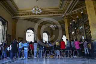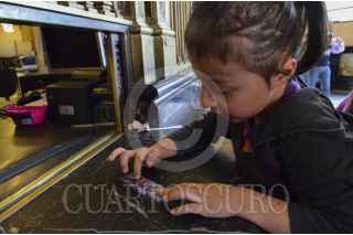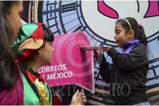 MÉXICO, DF., 04ENERO2014.- Cientos de niños acompañados por sus padres y abuelos acudieron al edificio de Correos de México para enviar su carta a los Reyes Magos. El timbre postal especial navideño, necesario para completar el envío, tiene un costo este año de 11.50 pesos. En promedio se venden un aproximado de 15 mil timbres postales en tres horas. FOTO: MARÍA JOSÉ MARTÍNEZ /CUARTOSCURO.COM