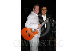 MÉXICO, DF 16NOVIEMBRE2005.- El guitarrista mexicano Chamin Correa presentó la linea de guitarras que lleva su nombre, para lo cual ofreció un concierto-cata en un bar del sur de la ciudad. En la foto con la conductora Lili Brillanti y la actriz Laura Zapata. FOTO: Miguel Dimayuga/CUARTOSCURO.COM